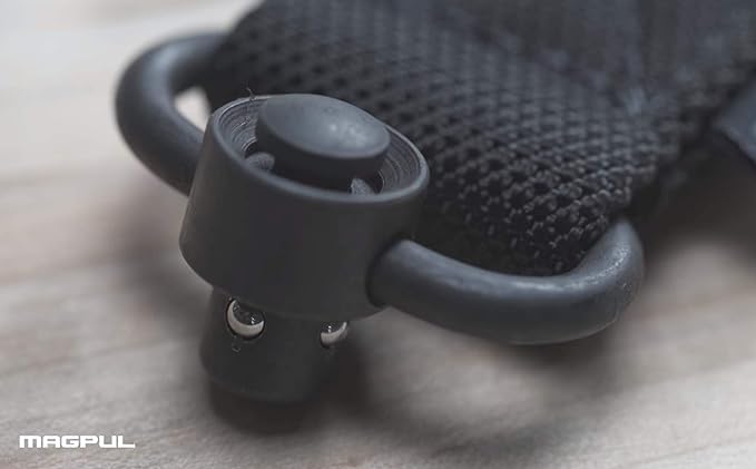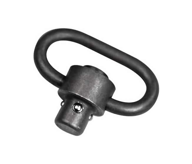 Push-button quick-detach sling swivel for 1-1/4″ webbing, compatible with QD sling attachment points. Manganese-phosphate finished steel. Combine with the MS1 Sling for a dedicated two-point sling. Made in U.S.A.